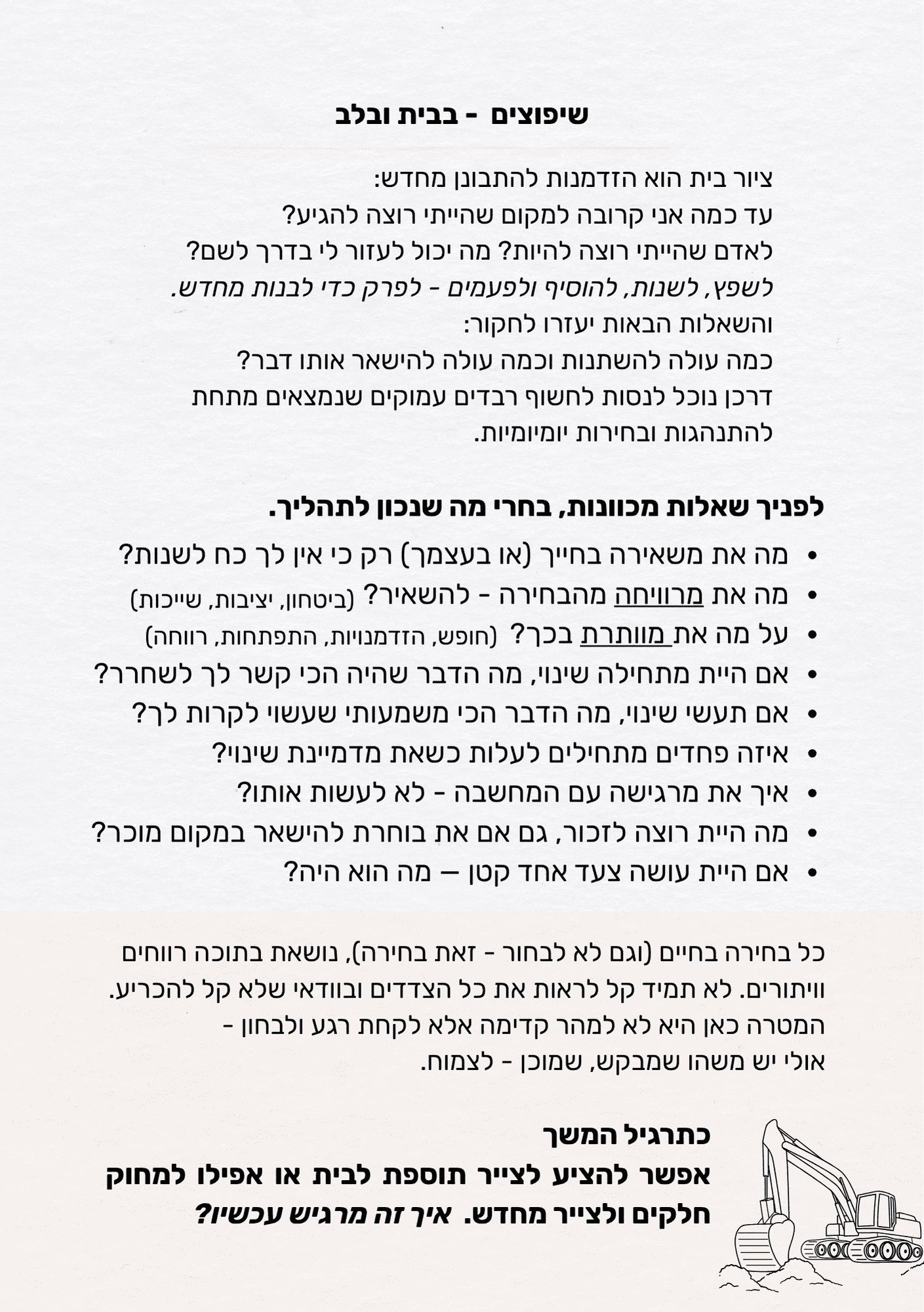 כך שמעבר לתכנים שתמצאי דרך ציור הבית, תוכלי לשלב תרגילי המשך בתוך התהליכים שאת כבר מעבירה.